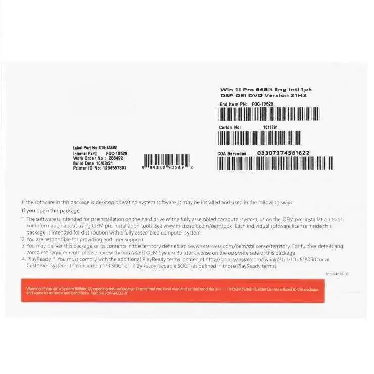 Microsoft Windows 11 Professional OEM DVD 64-bit English 1 Pack